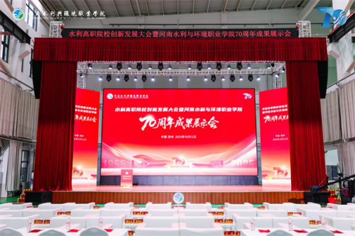 七秩芳华,水利千秋。10月12日,河南水利与环境职业学院校园内高朋满座、胜友如云,水利高职院校创新发展大会暨办学70周年成果展示会在此隆重举行。河南省教育厅党组成员、省委教育工委专职副书记刘林亚,河南省水利厅党组成员、副厅长、一级巡视员刘玉柏,河南省水利厅副厅长祝云宪等各级领导、兄弟院校代表、行业企业嘉宾、各界校友及在校师生齐聚一堂,共庆学校七十华诞,共谋水利职业教育创新发展大计。