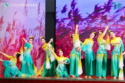 开幕式后,由大学生艺术团和来自各二级学院的学生带来的“光辉七十载 共筑水利梦”汇报演出正式开始。演出现场气氛热烈,节目内容精彩纷呈。舞台剧《时光的印记》以细腻的叙事手法,生动再现了从1955年白马寺初创到新时代跨越发展的峥嵘岁月,将几代水环人艰苦奋斗的场景一幕幕重现在观众眼前,令人动容。随后的歌曲串烧《岁月如歌》则通过不同时代的经典旋律,串联起七十年的光阴故事,引发了全场不同年龄段校友的深切共鸣。极具专业特色的情景剧《运河风华》,将古代水利智慧与当代治水精神巧妙融合,展现了水利人一脉相承的使命担当。大型舞蹈《万象更新 云程发轫》,则以恢宏的场面和充满力量的舞姿,寓意着学校在新起点上蓄势待发、前程万里的壮阔图景,将现场气氛推向高潮。