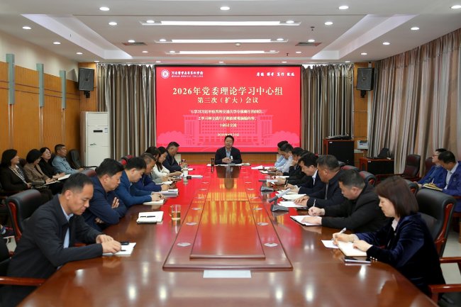 4月23日,学校2026年第三次党委理论学习中心组(扩大)会议在图文信息中心召开,专题学习习近平总书记关于树立和践行正确政绩观重要论述,围绕“树立和践行正确政绩观,推动学校事业高质量发展”举行集体学习与交流研讨。校长禄保平主持会议并讲话,学校班子成员以及各党总支(直属党支部)、单位、部门负责人参加。